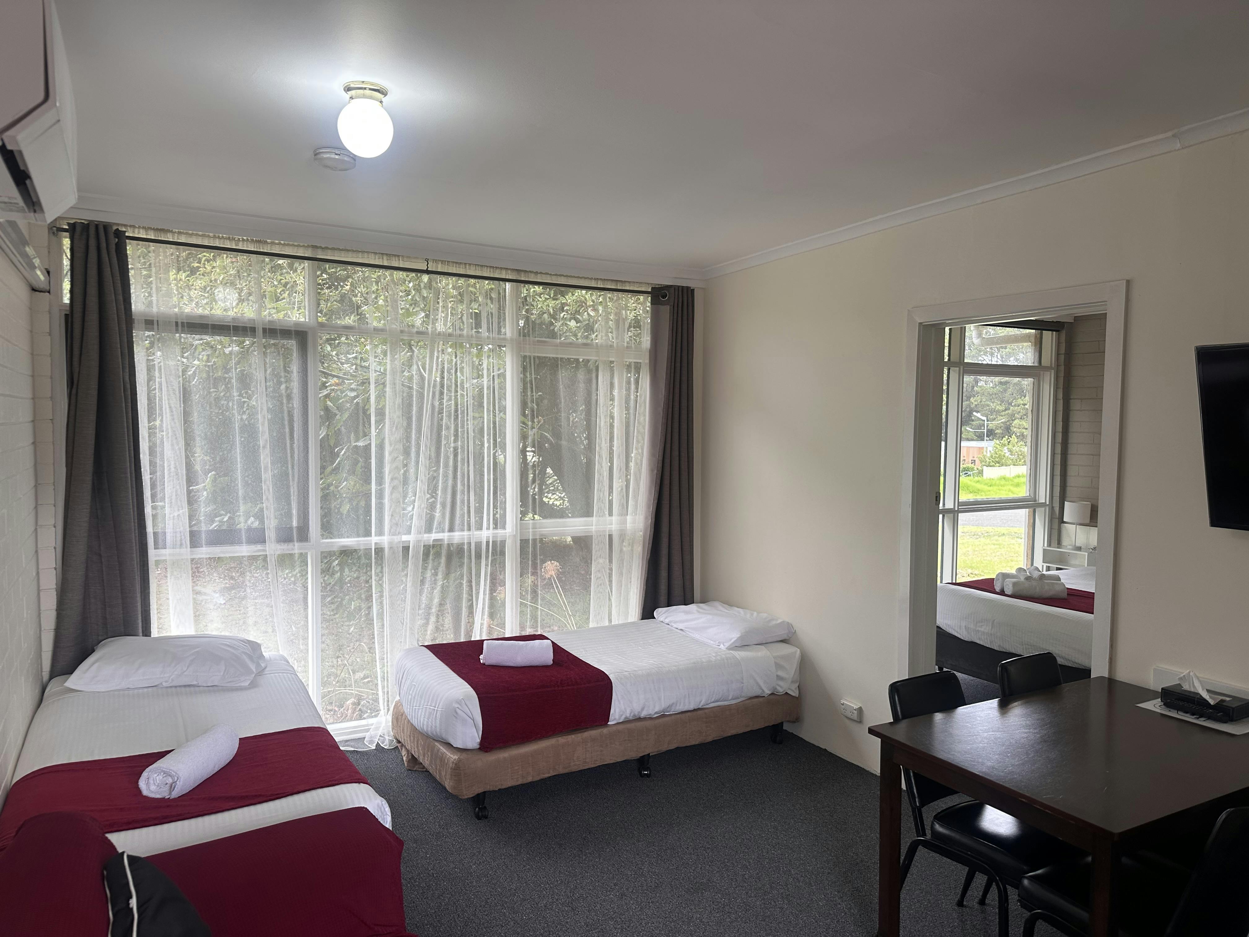 Enjoy modern amenities including free Wi-Fi, air conditioning, a flat-screen TV, tea and coffee-making facilities, and a mini-fridge. With plenty of space to relax after a day of exploring Traralgon and the beautiful Gippsland region, our Family Room is the perfect home away from home.